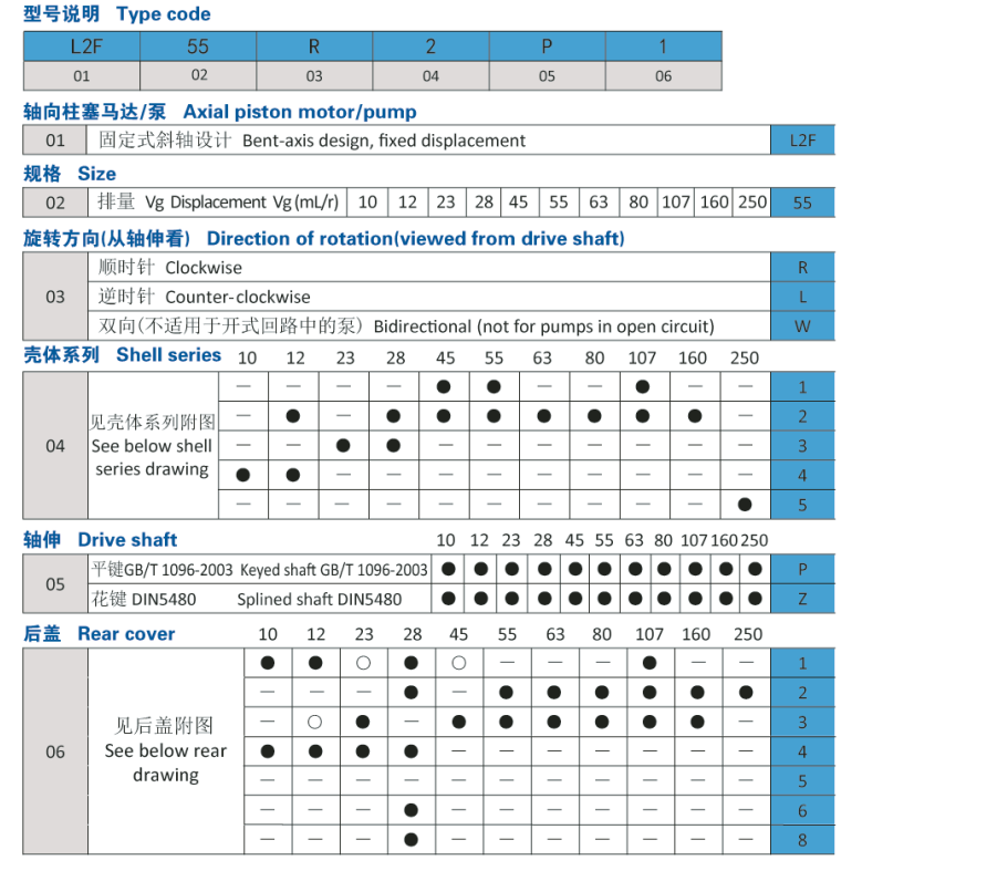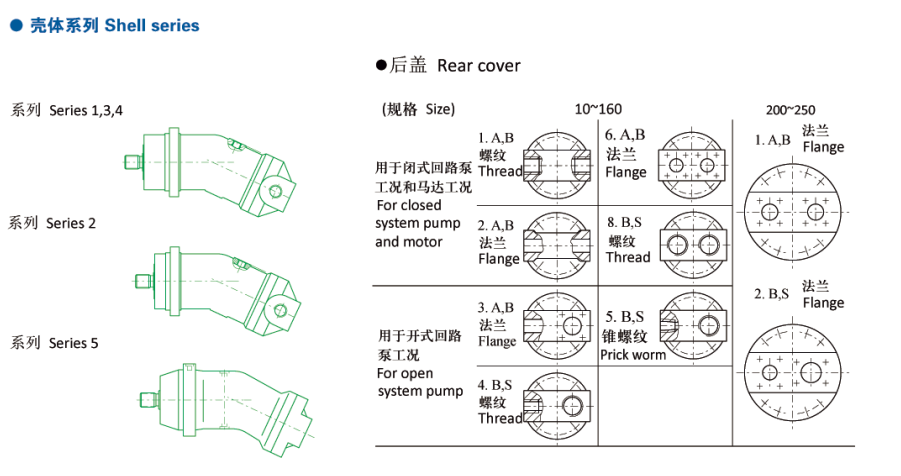 產品特點 -斜軸式定量柱塞泵/馬達,用于開式或閉式系統 -當作泵使用時,流量與轉速和排量成正比 -當作馬達使用時,輸出轉速和流量成正比而與排量成反比
