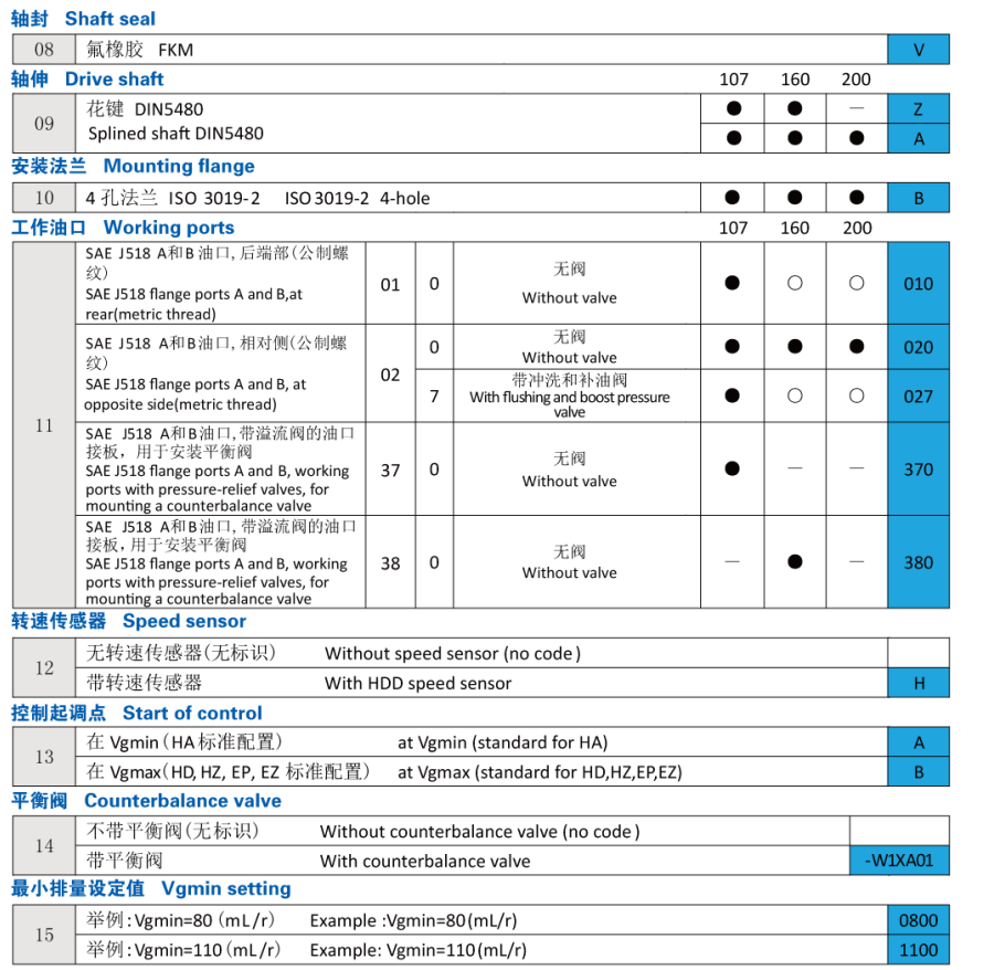 -寬廣的控制范圍使變量馬達(dá)能夠滿足對(duì)高轉(zhuǎn)速和高扭矩的要求排量可在Vgmax至Vgmin=0之間無(wú)極改變