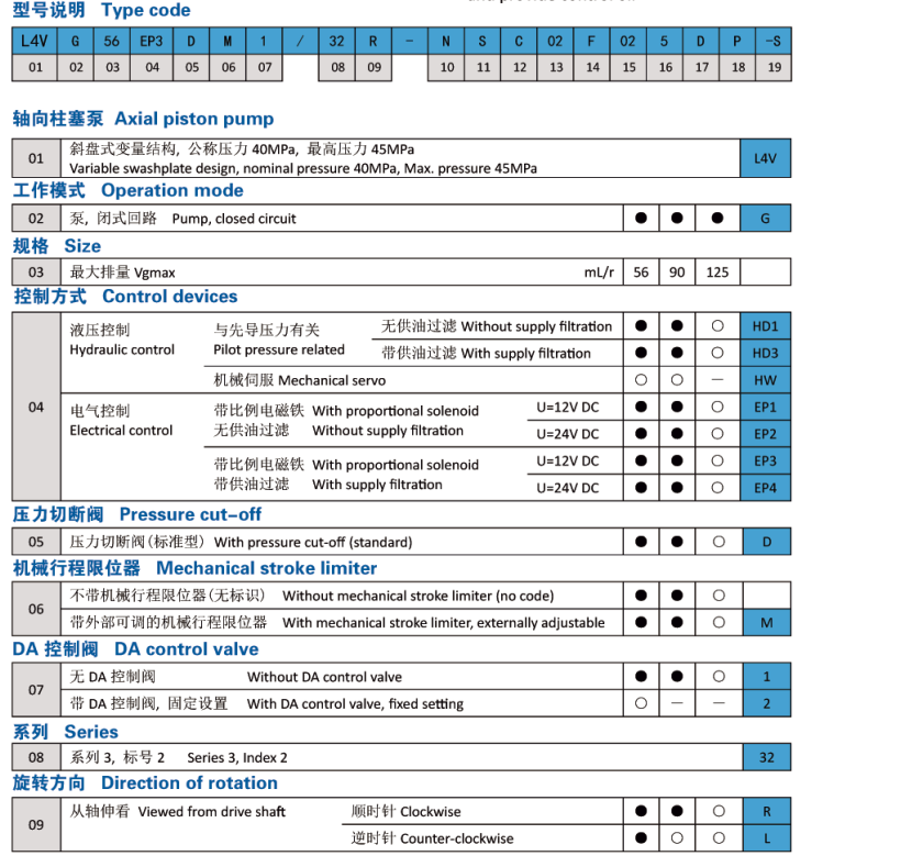 產品特點 -斜盤式軸向柱塞變量泵,用于閉式回路 - 當斜盤通過中位時,液壓油流動方向會平穩改變 -在各高壓側配置溢流閥用于防止液壓傳動系統過載 -內置補油泵作為供油泵和控制泵 -最大補油壓力由內置溢流閥限制