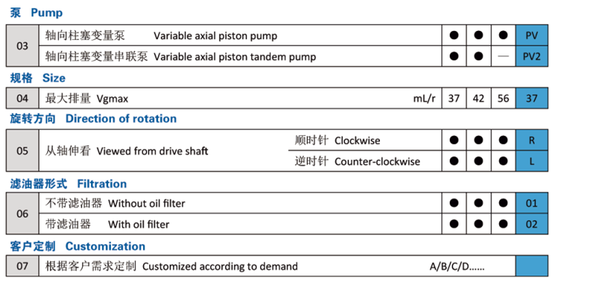 -內置補油泵,最大補油壓力由內置溢流閥限制